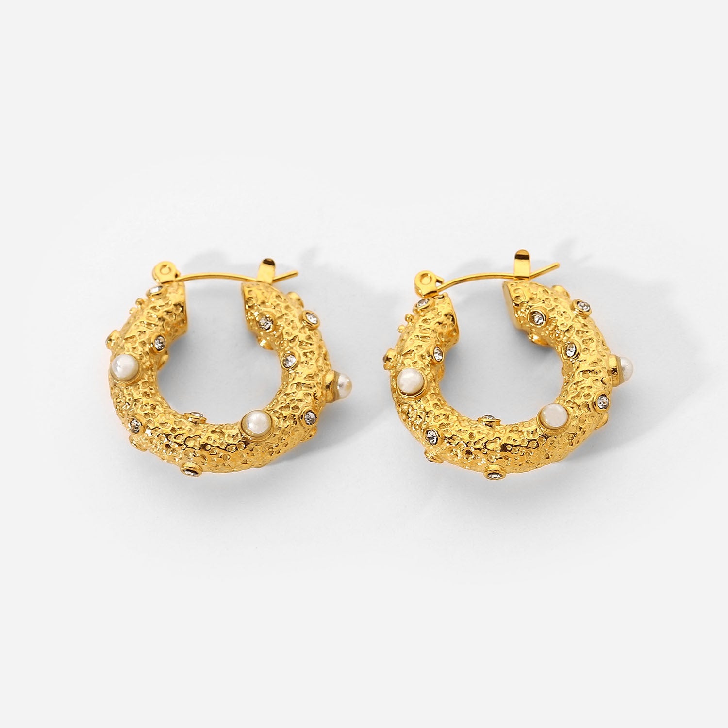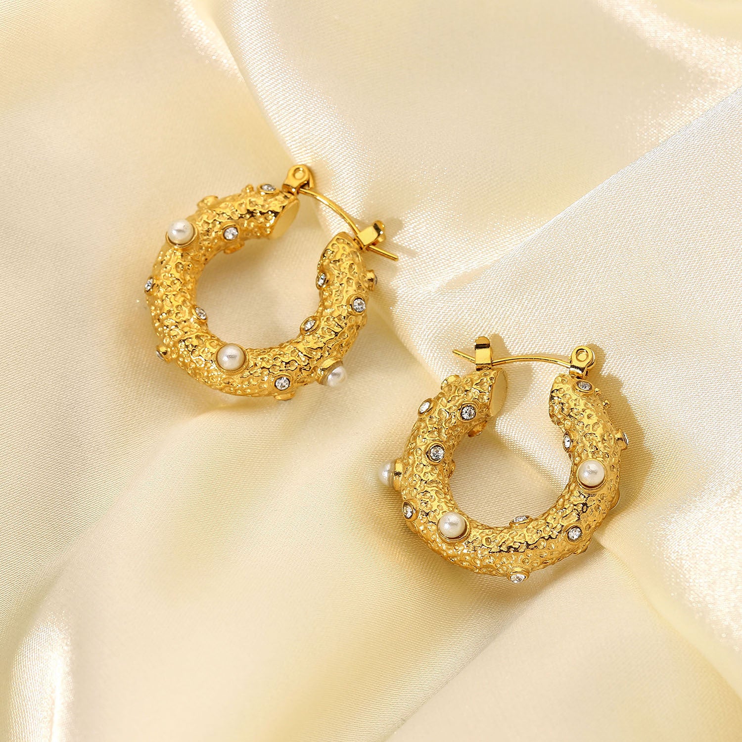 Stainless Steel Jewelry Hammered Cubic Zirconia Earrings For Women