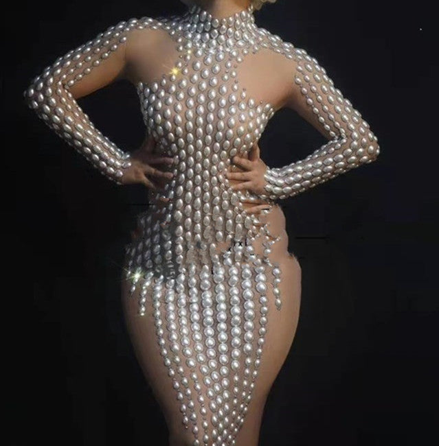 Women Pearl Dress Long Skirt Tight